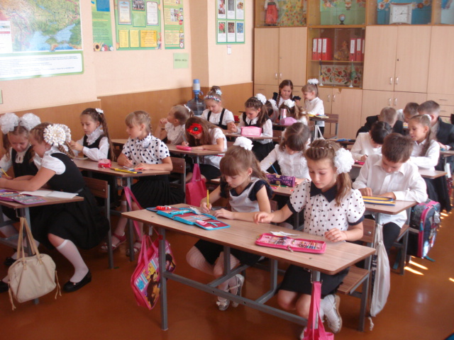 1 сентября наш класс снова встретился на праздничной линейке посвященной дню знаний. Многие девочки и мальчики подросли, отдохнули, загорели. Все набрались сил и энергии для того чтобы снова постигать школьные предметы. Особую радость вызвала и встреча с нашим руководителем - Татьяной Михайловной, которая провела очень интересные уроки. Дети с удовольствием рассказывали стихи и рисовали карту Украины.