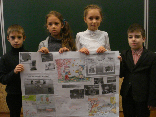 19 октября на уроке природоведения наши ребята работали над творческим проектом "Чистый воздух". Были созданы 5 команд, каждая из которых имела свое видение этой проблемы и предложила свой вариант борьбы за чистый воздух на планете. У всех получились замечательные плакаты, которые Татьяна Михайловна оценила максимальной оценкой. Так держать наши юные ученые!